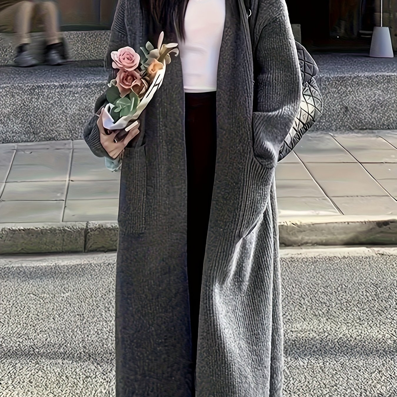 TEMU 플러스 사이즈 - 여성용 오버사이즈 오픈 프론트 가디건 숄 스웨터, 가을과 겨울 저녁의 캐주얼 웨어에 완벽합니다.