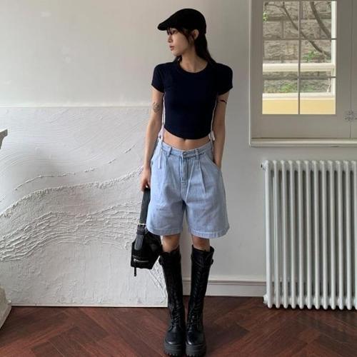 [신상오픈런]|KHP77AA|키르베 넓은 여성 썸머 핀턱 청바지 패션 하프팬츠_18171728_597559
