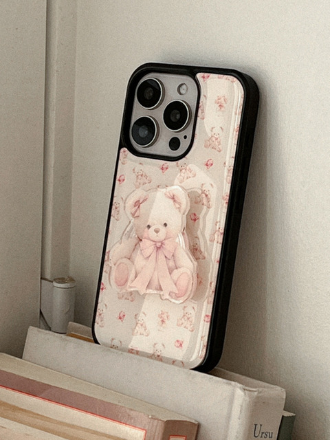 [메이드모먼] pink bear 디자인 [블랙 맥세이프 범퍼케이스]