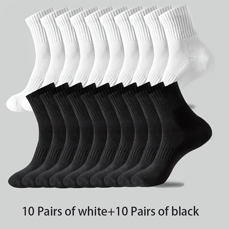 TEMU 남녀 공용 블랙 앤 화이트 스타일 통기성 미드 카프 양말 20/10 더블팩