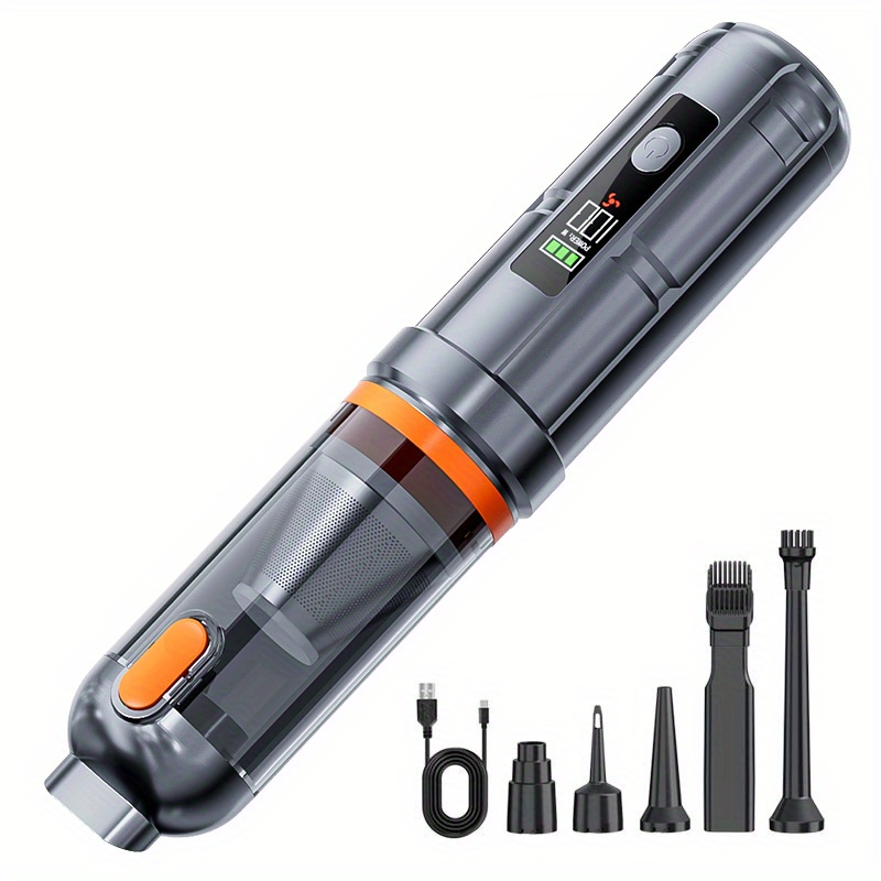 TEMU LED 라이트가 있는 고출력 무선 핸드헬드 진공 청소기, 17000PA 흡입력, 디지털 디스플레이, 4-in-1 불기/흡입/풀/필, 차량/집/사무실/캠핑용 USB 충전식 - 인체공학적 손잡이 및 다양한 노즐 포함, 자동차 청소용 진공청소기, 세련된 디자인, 내구성 강화