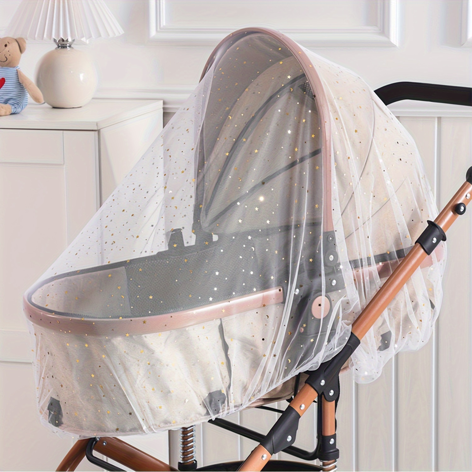 TEMU 프린팅 및 골드 포일 모기장, 유모차용 아기 우산 버기용 방충망 커버