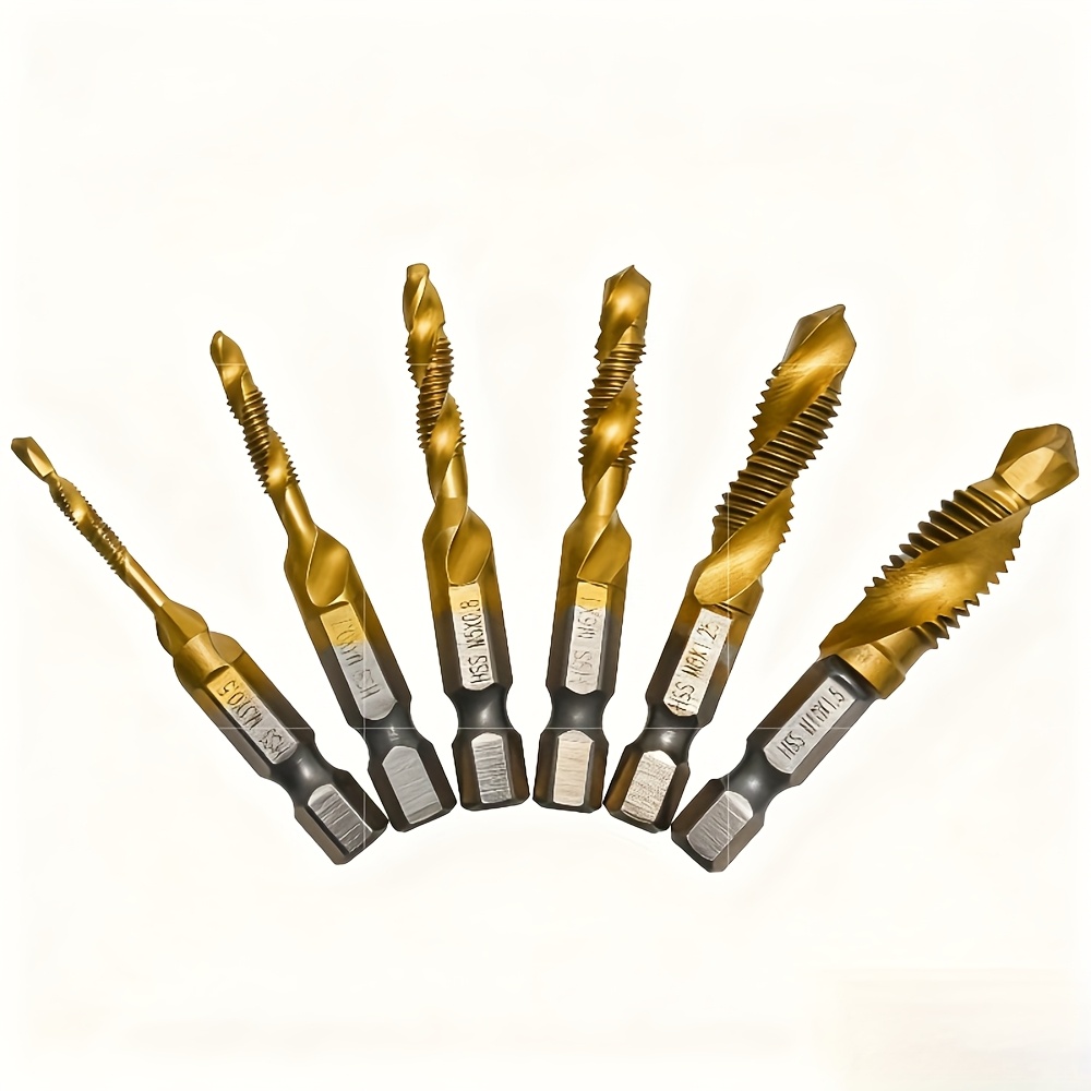 TEMU SHAWTY 코발트 드릴 비트 및 탭 6세트 (채퍼링 및 디버링 기능 포함), M3~M10 미터법 사이즈, 1/4인치 육각 핸들, 크리스마스 및 추수감사절 선물, 가정 및 장식용 도구로 적합