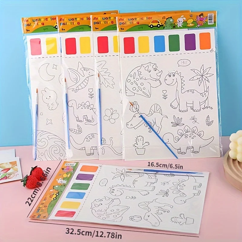 학생 및 DIY 핸드메이드 세트에 적합한 아트 페이퍼 8개, 브러쉬 8개, 페인트 6가지 색상으로 구성된 미술 도구 세트