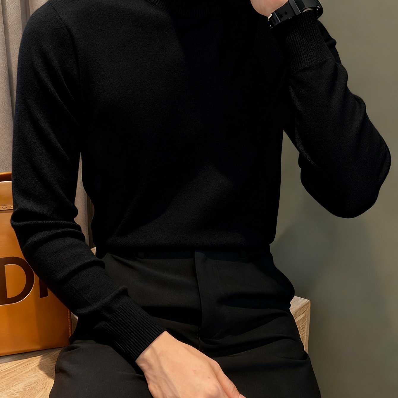 TEMU 새로운 가을/겨울 단색 슬림핏 남성용 터틀넥 스웨터, 레이어드룩