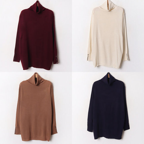 나야홍 / 빅사이즈티 B450L509 소매단추폴라긴팔니트 RM