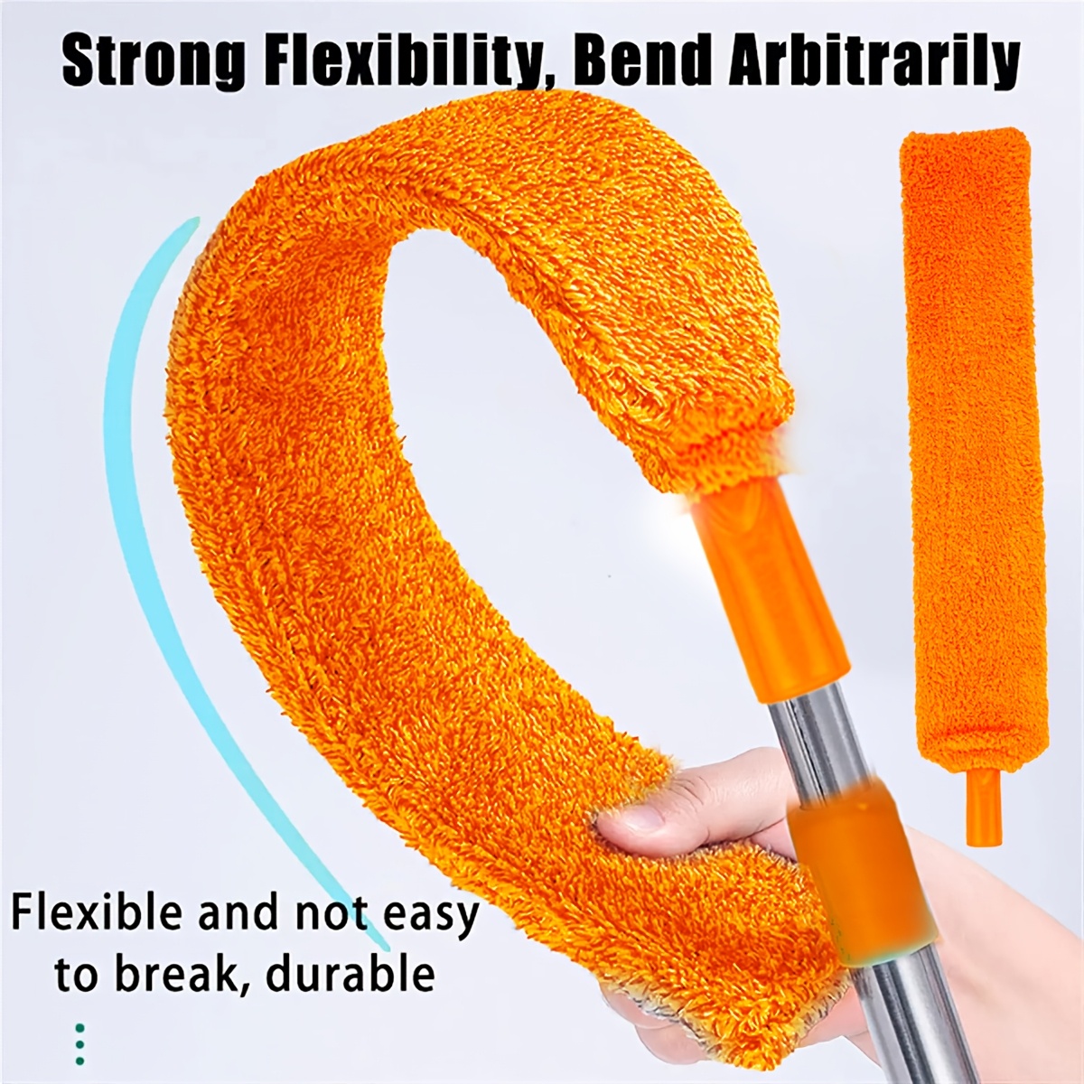 TEMU 리트랙터블 마이크로파이버 먼지솔 - 곡선형 헤드, 재사용 및 세탁 가능, 높은 천장, 거실, 침실, 욕실, 파티오용 - 배터리 불필요