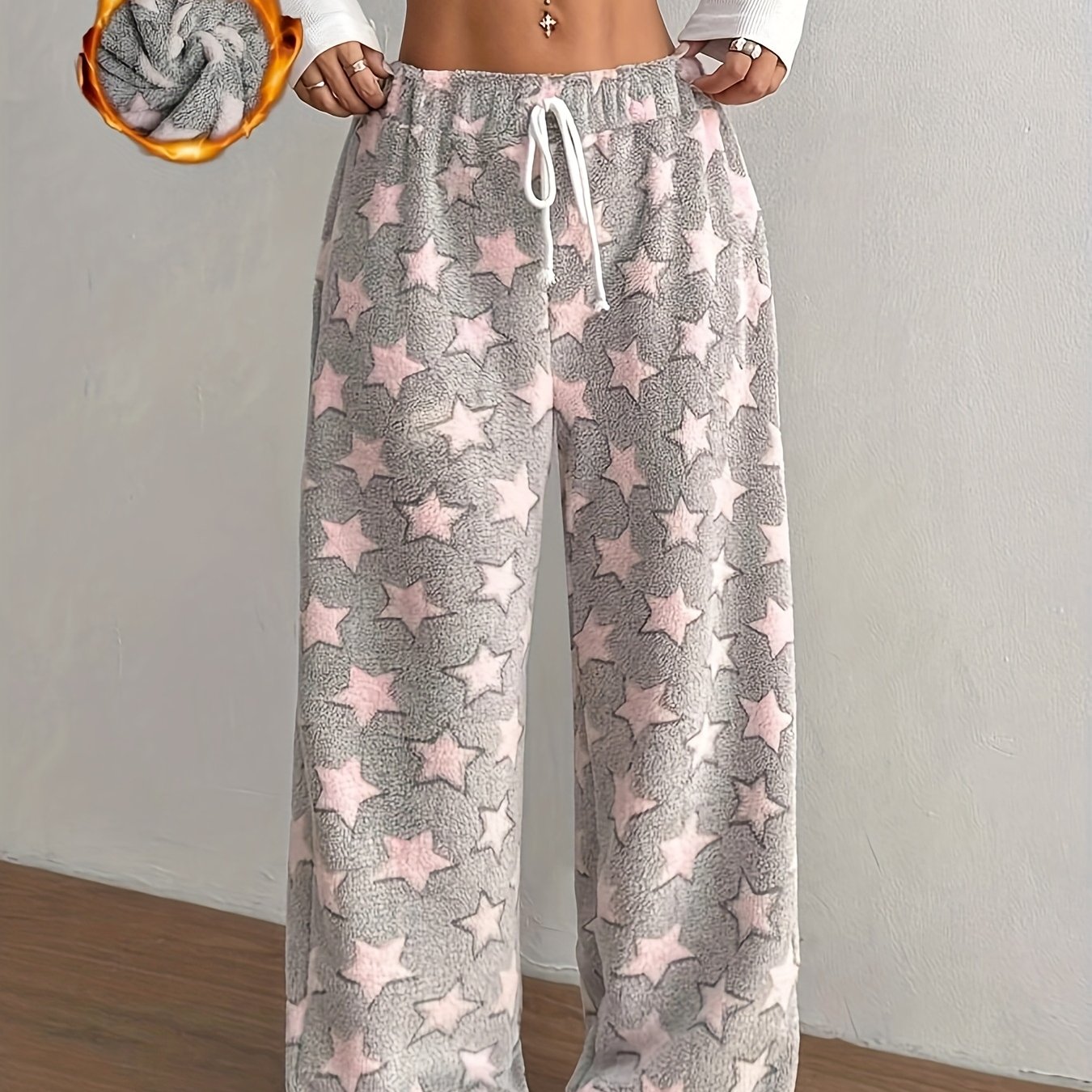 TEMU 여성용 두꺼운 플란넬 팬츠 - 겨울 라운지 팬츠, 드로스트링 허리, 비탄력 원단 실내/야외용, 세탁기 사용 가능 우아한 잠옷 & 데일리웨어 (비탄력 핏) - 편안한 홈웨어 바텀, 기하학 패턴, 따뜻한 소재, 캐주얼 웨어