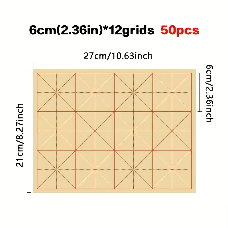 TEMU 초보자를 위한 그리드 패턴이 있는 50장의 서예 연습지 - 흡수되지 않는 표면, 전통 중국화 및 붓글씨 연습용 종이, 정밀한 획을 위한 아시안 서예 예술에 이상적, 구조적인 학습 도구