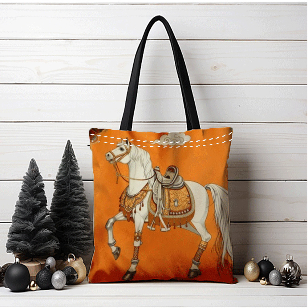 TEMU 주황색 배경에 흰색 말 디자인이 돋보이는 이 제품은 고급스러운 스타일을 선보입니다. 컬처 아트 프린트 재사용 가능한 쇼핑백은 고품질의 오픈 디자인으로 제작되었으며, 일상 및 식료품 쇼핑, 크리스마스 선물로도 완벽합니다.