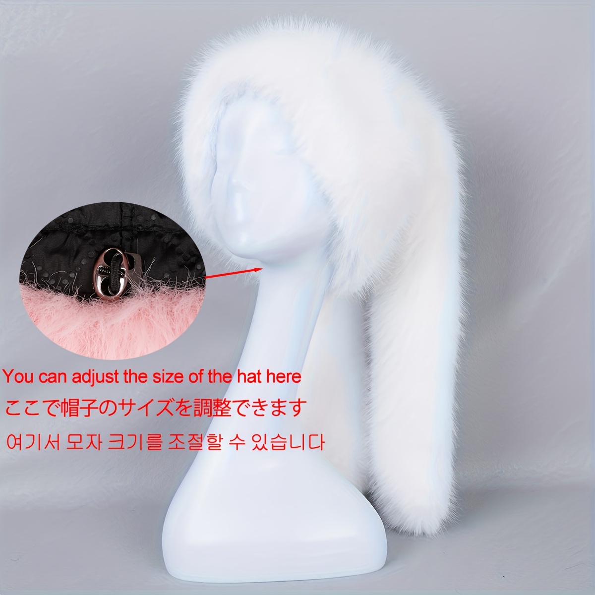TEMU 여성용 포근한 핑크 인조 퍼 귀마개 모자 - 부드러운 플러시 롱이어드 폭스 디자인, 따뜻하고 가벼우며 귀 보호 기능 - 신축성 없음, 토글 클로저, 성 패트릭의 날에 완벽함