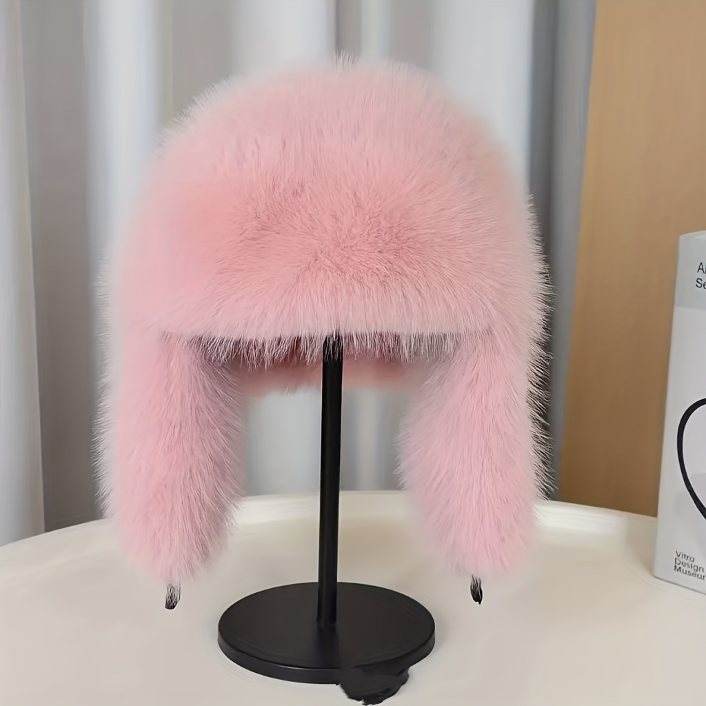 TEMU 여성용 플러시 인조 모피 귀마개 모자 - 부드럽고 두꺼운 겨울 스키 모자, 귀 덮개 포함, 따뜻한 추운 날씨 야외용 모자 (스키, 스노ーボ드, 캐주얼 웨어용), 겨울 스키 장비, 스타일리시한 겨울 액세서리, 부드러운 질감