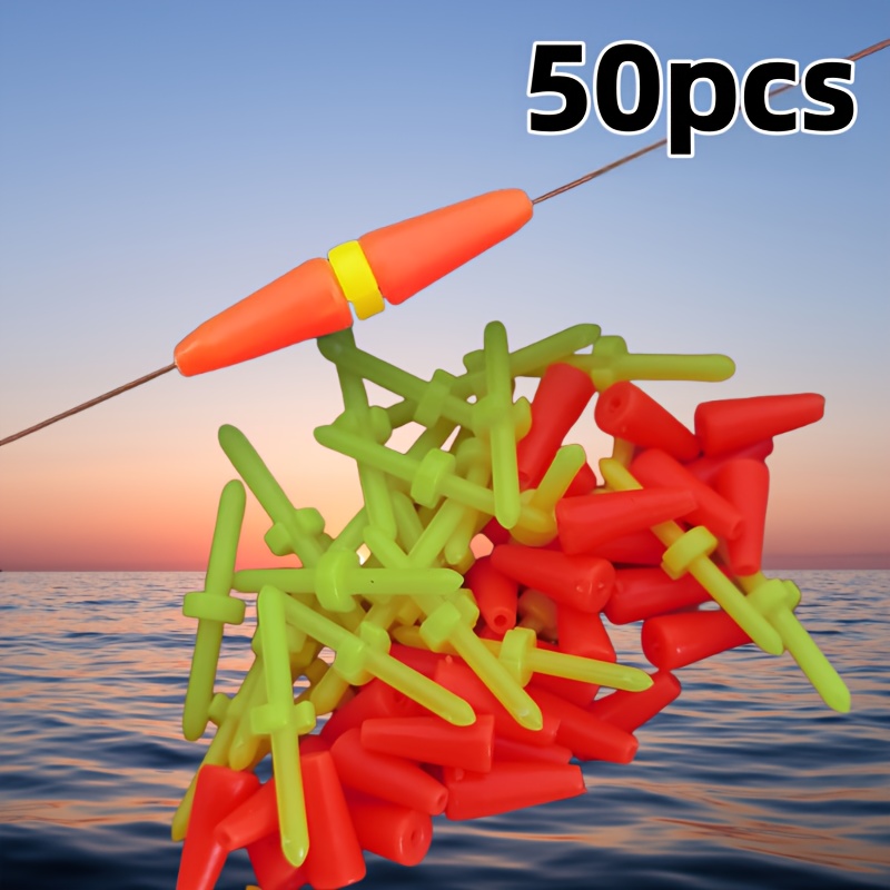 TEMU 50개 대형 플러그 시스템 낚시 플로트 - 장거리 캐스팅, 암석 낚시 및 전천후 사용을 위한 초밀착 플로트를 위한 강력한 비파괴 라인 (연수어/해수) - 다색 플로트 장치 (50개)