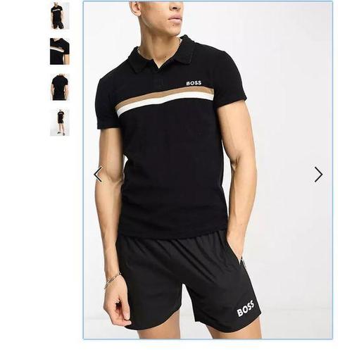 휴고보스 반팔 티셔츠 테리 비치 셔츠 검정 남자 비치웨어 패션 캐주얼 BOSS