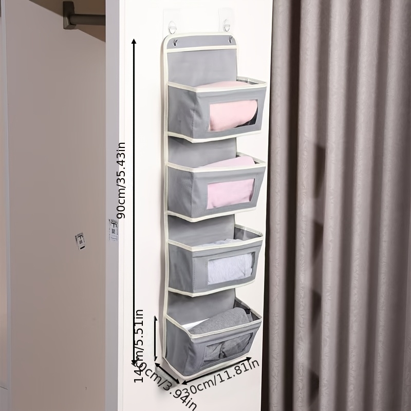 TEMU 4단 행잉 패브릭 선반 | 침실, 욕실 & 팬트리용 대형 포켓 벽걸이 정리함 | 튼튼한 다단 선반, 좁은 아파트를 위한 컴팩트 디자인, 간편한 설치, 내구성 좋은 패브릭 유닛