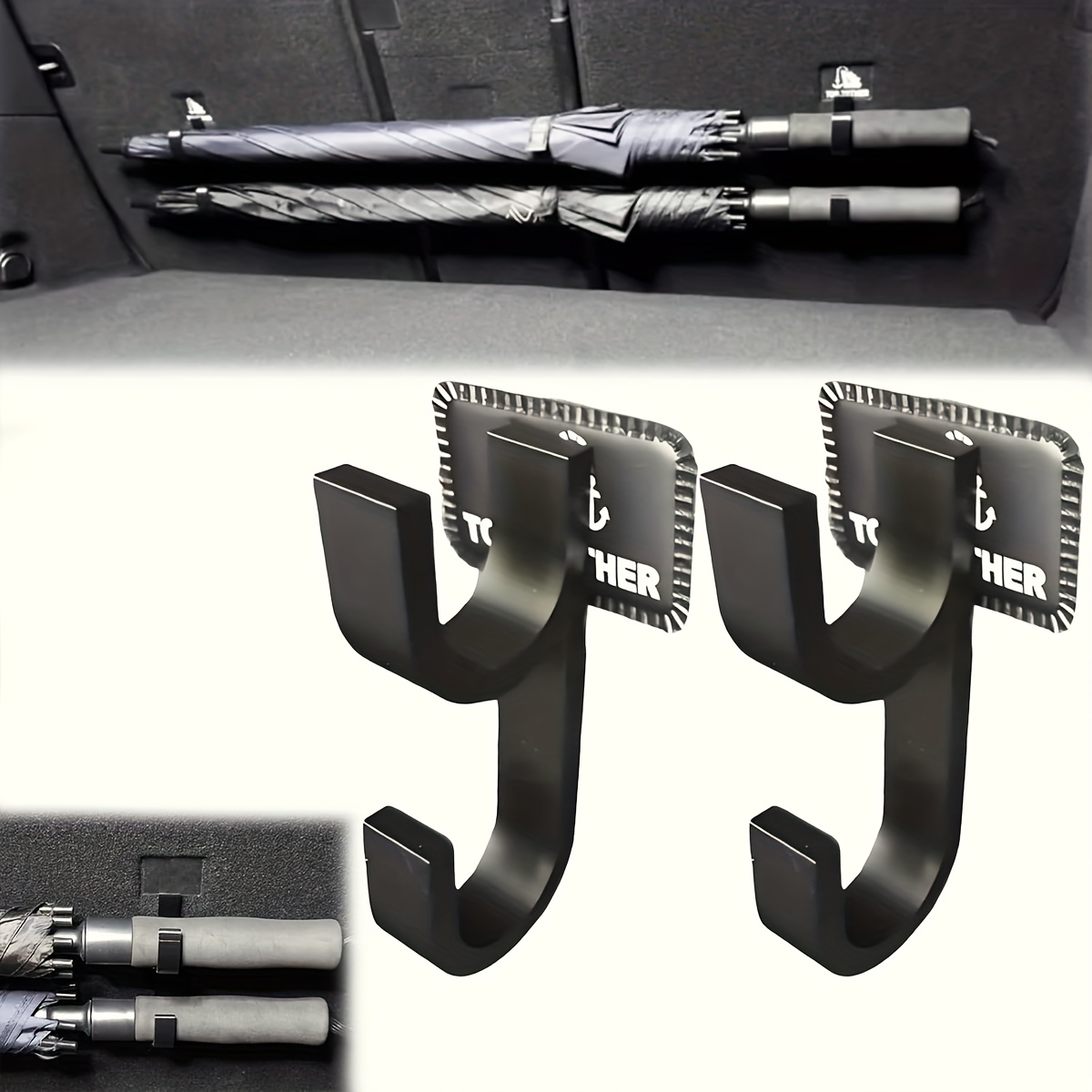 TEMU 2개 범용 차량용 우산 걸이 | 우산, 수건, 낚싯대, 캠핑 장비 보관용 플라스틱 뒷트렁 걸이, 드릴 불필요, 대부분의 차량에 안전하게 설치 가능