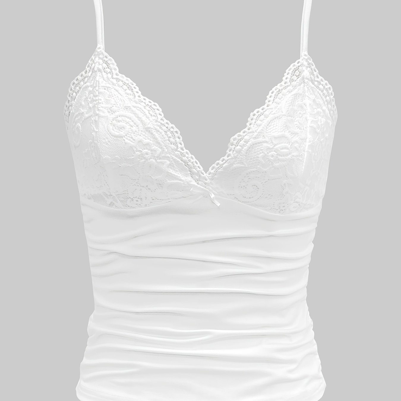 TEMU 여성용 프렌치 스타일 레이스 패치워크 V넥 캐미솔, 리본 장식, 여유감 있고 다재다능한 오픈 백 크롭 탑