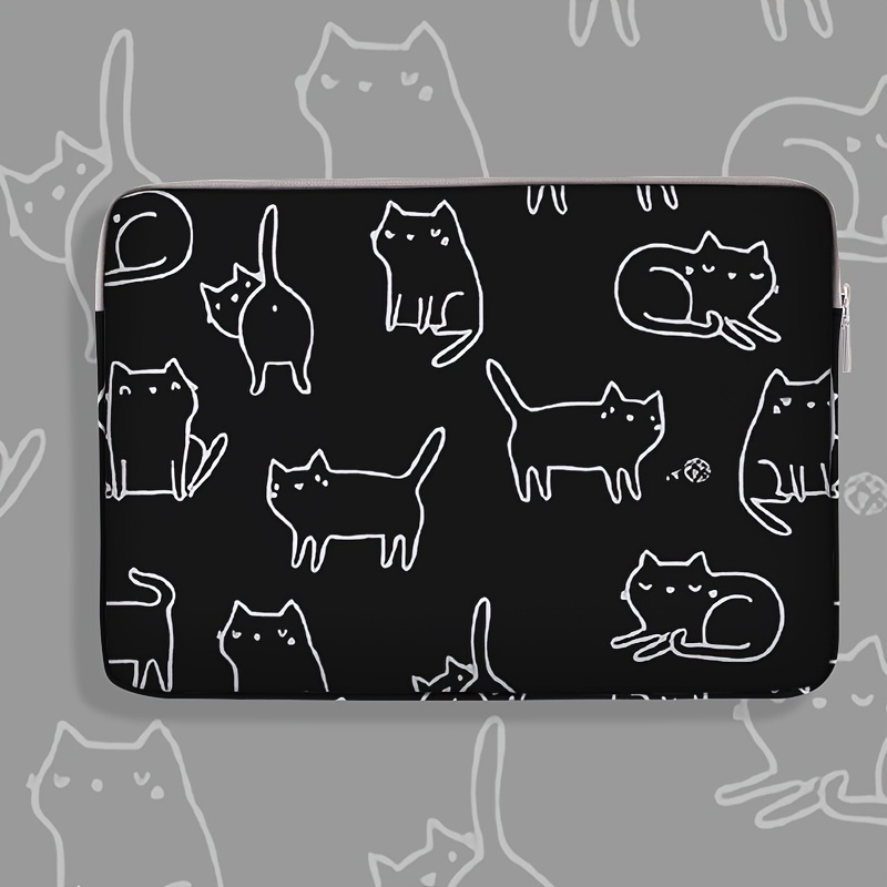 TEMU 귀여운 만화 고양이 프린트 노트북 슬리브 - 부드러운 폴리에스테르, 14인치 컴퓨터 & 태블릿용 지퍼 노트북 케이스, 사무실/학교에 완벽|노트북파우치