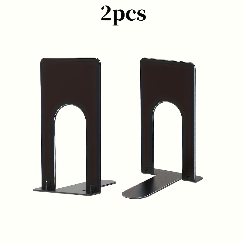 TEMU 2개입 강력 메탈 책꽂이 | 산업용 강도 책 정지 장치, 무거운 책/영화/CD용, 미끄럼 방지 받침대 & 강화 구조, 무광 블랙 선반 정리함