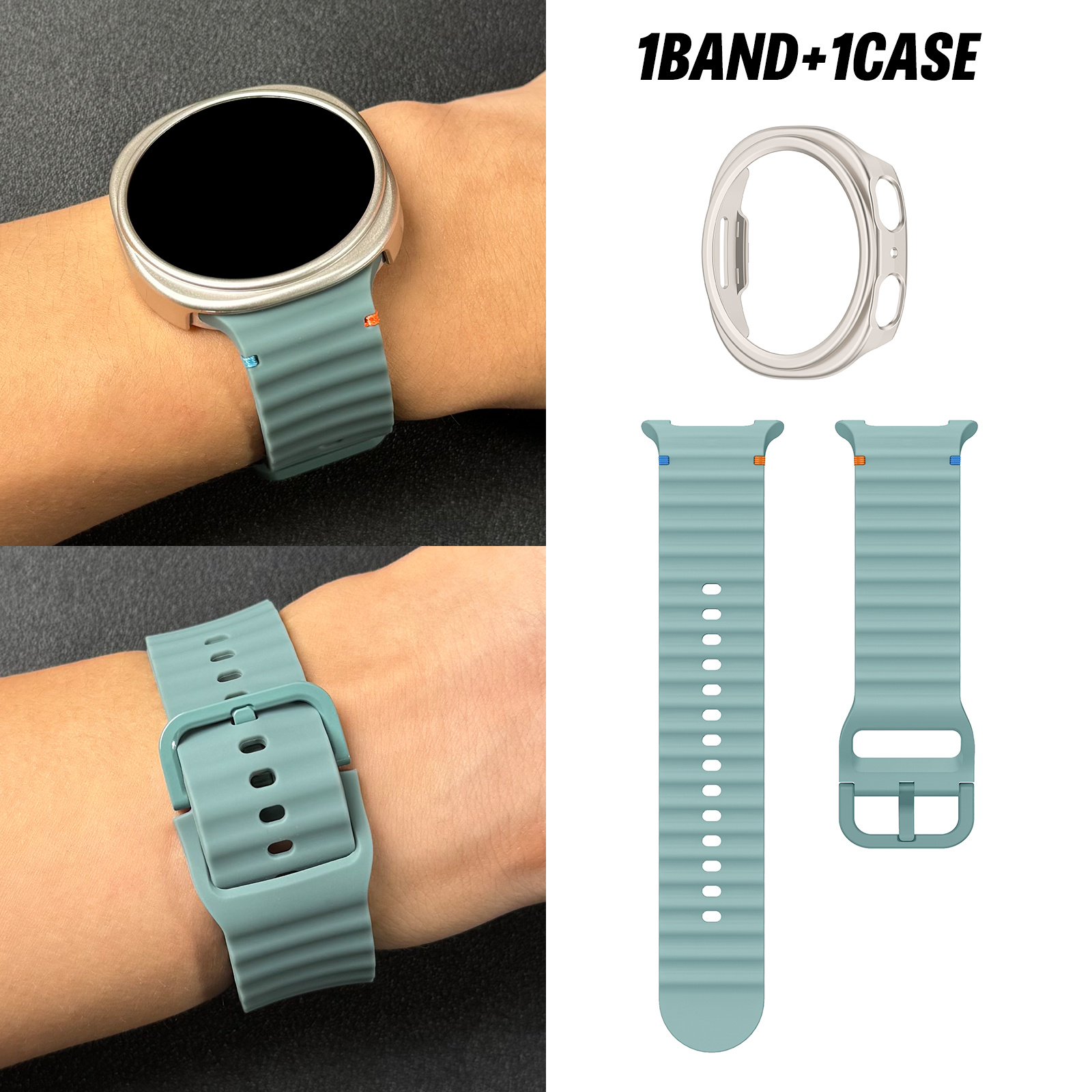 TEMU 2개입, 삼성 워치 8 웨이브 스티치 컬러풀 버클 스트랩 + 삼성 워치 8 세미 인클로즈드 할로우 케이스 40/44/46mm, 스포츠용 통기성, 땀 방지, 충돌 방지, 남녀 공용.