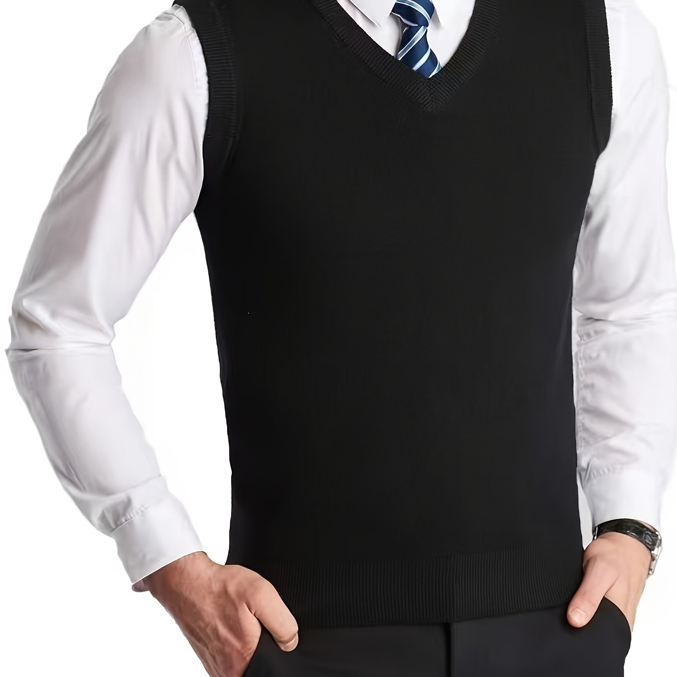 TEMU 남성용 캐주얼 니트 조끼, 컬러블록 디자인 및 V넥, 민소매 스웨터