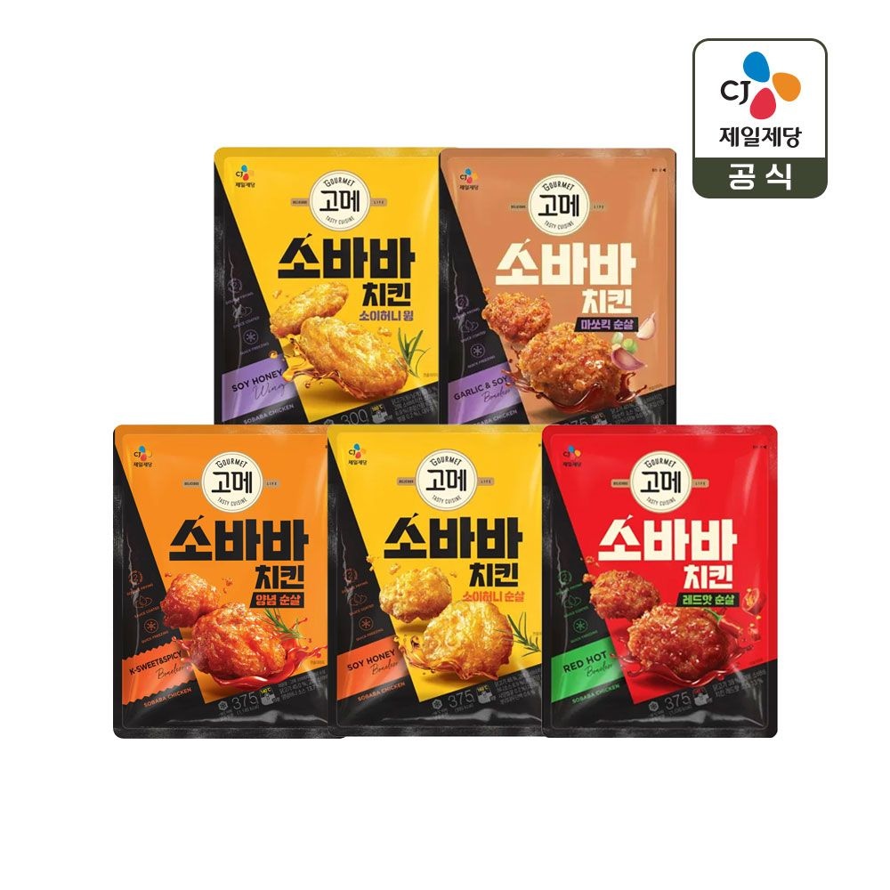CJ 고메 소바바치킨 소이허니 3종 각 1개 순살 375g 봉 300g 윙 300g 치킨