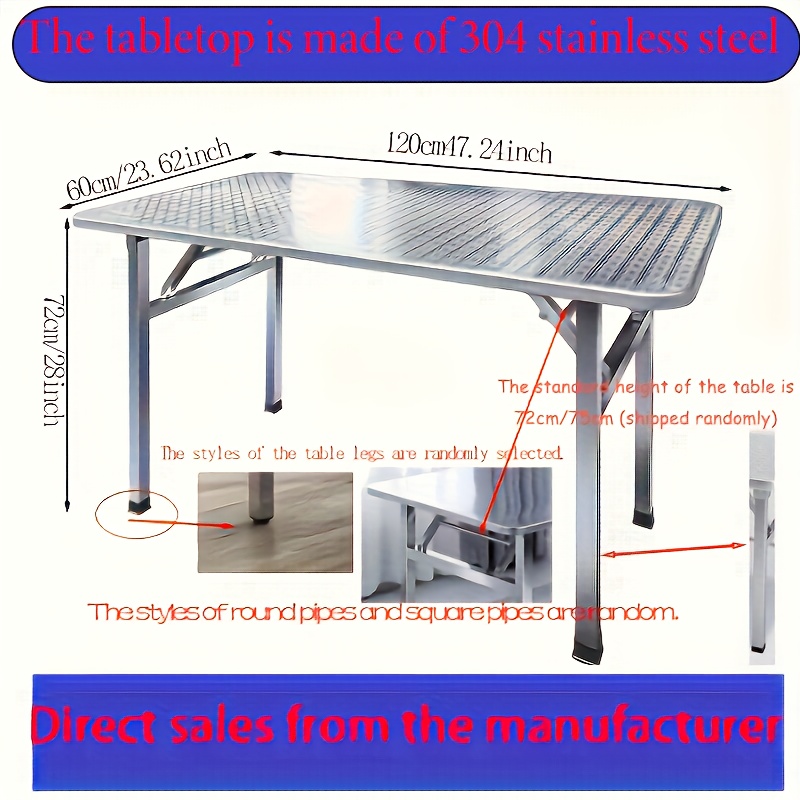 TEMU 헤비듀티 스테인리스 스틸 접이식 테이블 - 휴대용 접이식 직사각형 야외/테이블, 튼튼한 다리, 조립 불필요, 캠핑, 피크닉, 바베큐, 파티, 상업 및 가정용 쉬운 청소 표면 (스테인리스 스틸 테이블탑)|캠핑테이블