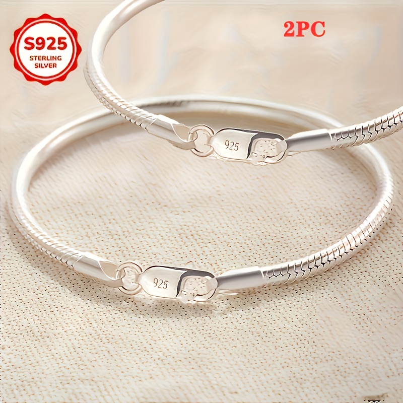 TEMU 여성을 위한 925 스테인리스 실버 뱀뼈 팔찌 2개 세트 | 독특하고 우아하며 고급스러운 디자인, 발렌타인데이 또는 어버이날 선물로 완벽