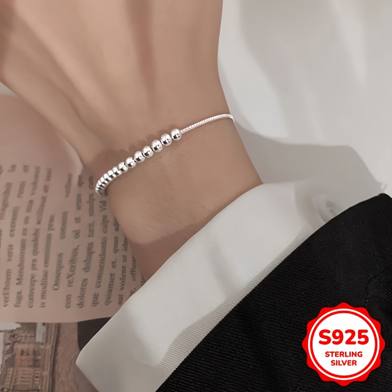 TEMU 925 스테인리스 실버 비드 팔찌 - 여성에게 어울리는 우아하고 간편한 디자인, 일상복으로 완벽하며 섬세한 선물로도 좋습니다.