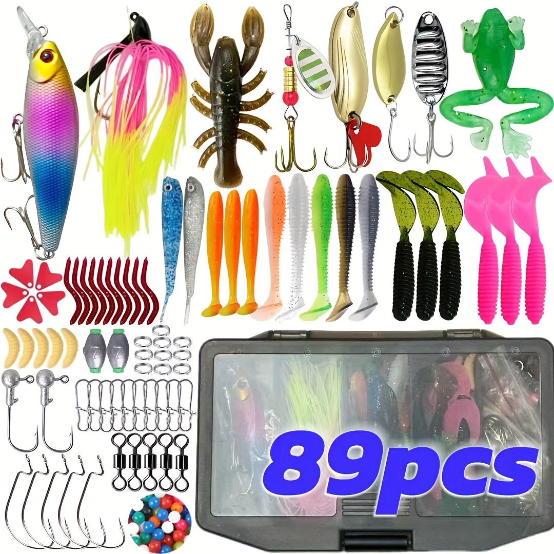 TEMU 완벽한 아웃도어 낚시 루어 세트, 태클 박스 포함, 루어, 커브 훅, 소프트 베이트, 훅 포함, 배스, 송어, 바닷물 민물 호수용, 408/89피스 고급 세트, 크리스마스 추수감사절 할로윈 선물로 완벽, 송어 낚시,베스 낚시,다색 루어,전체 세트,내구성 있는 후크,고품질 미끼,낚시 키트,낚시꾼을 위한 선물,어부들