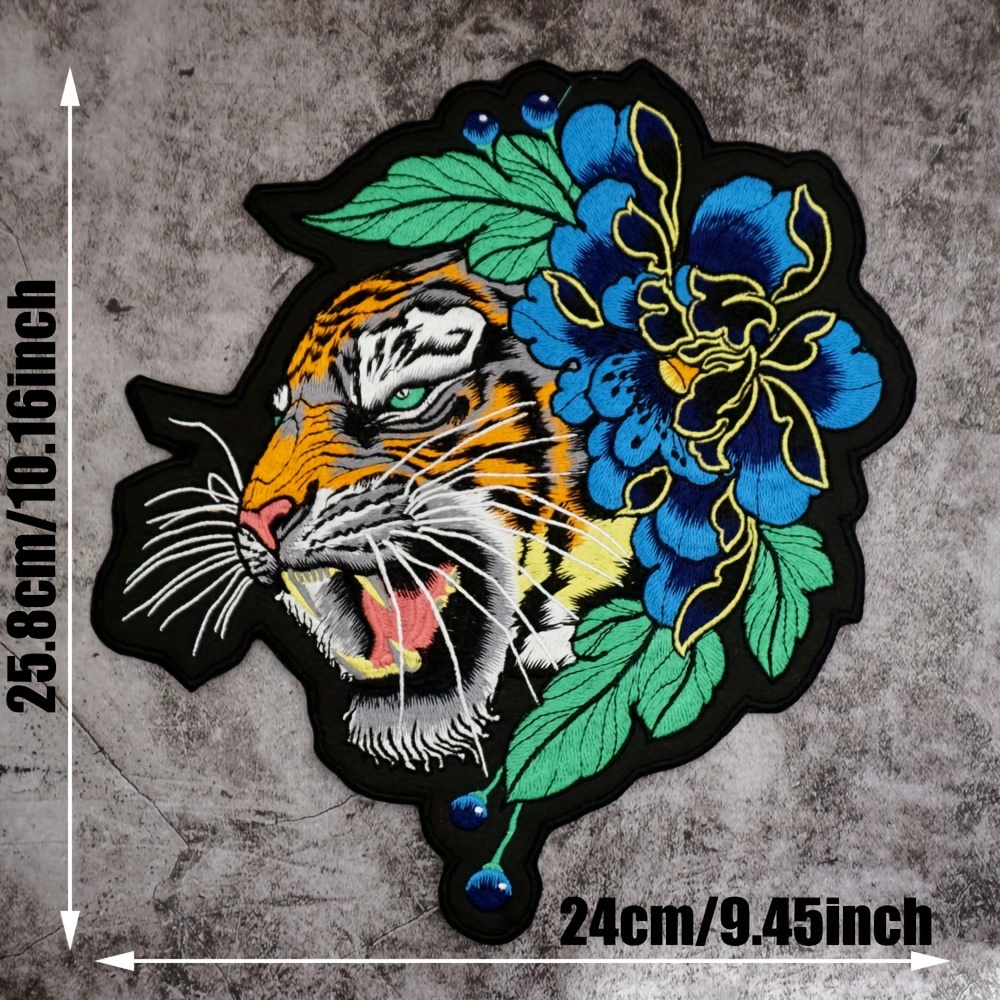 TEMU 오렌지와 블루 타이거 자수 패치, 가죽 조끼, 재킷용 다림질 앱리케, 꿰매 장식 배지, 예술적 공예, 의류 및 배낭용 꿰매 앱리케, 24x25.8cm 대형