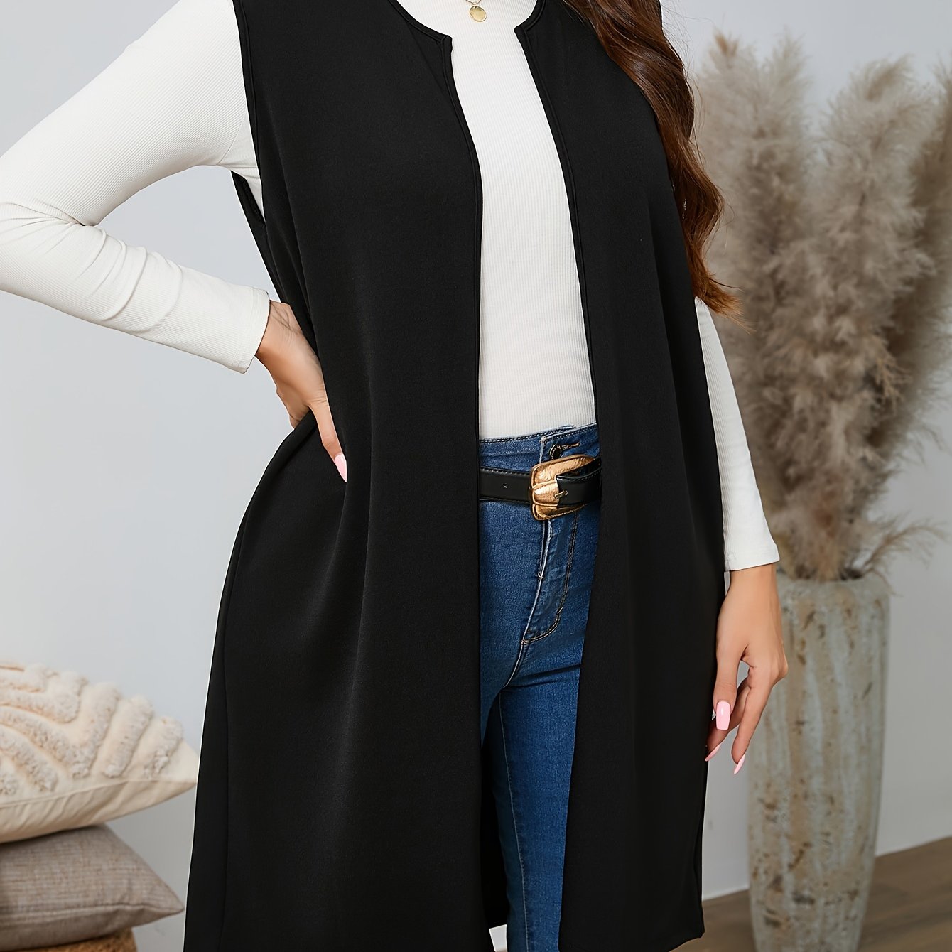 TEMU 플러스 사이즈 솔리드 오픈 프런트 조끼 재킷, 우아한 민소매 재킷 봄 & 여름, 여성 플러스 사이즈 의류