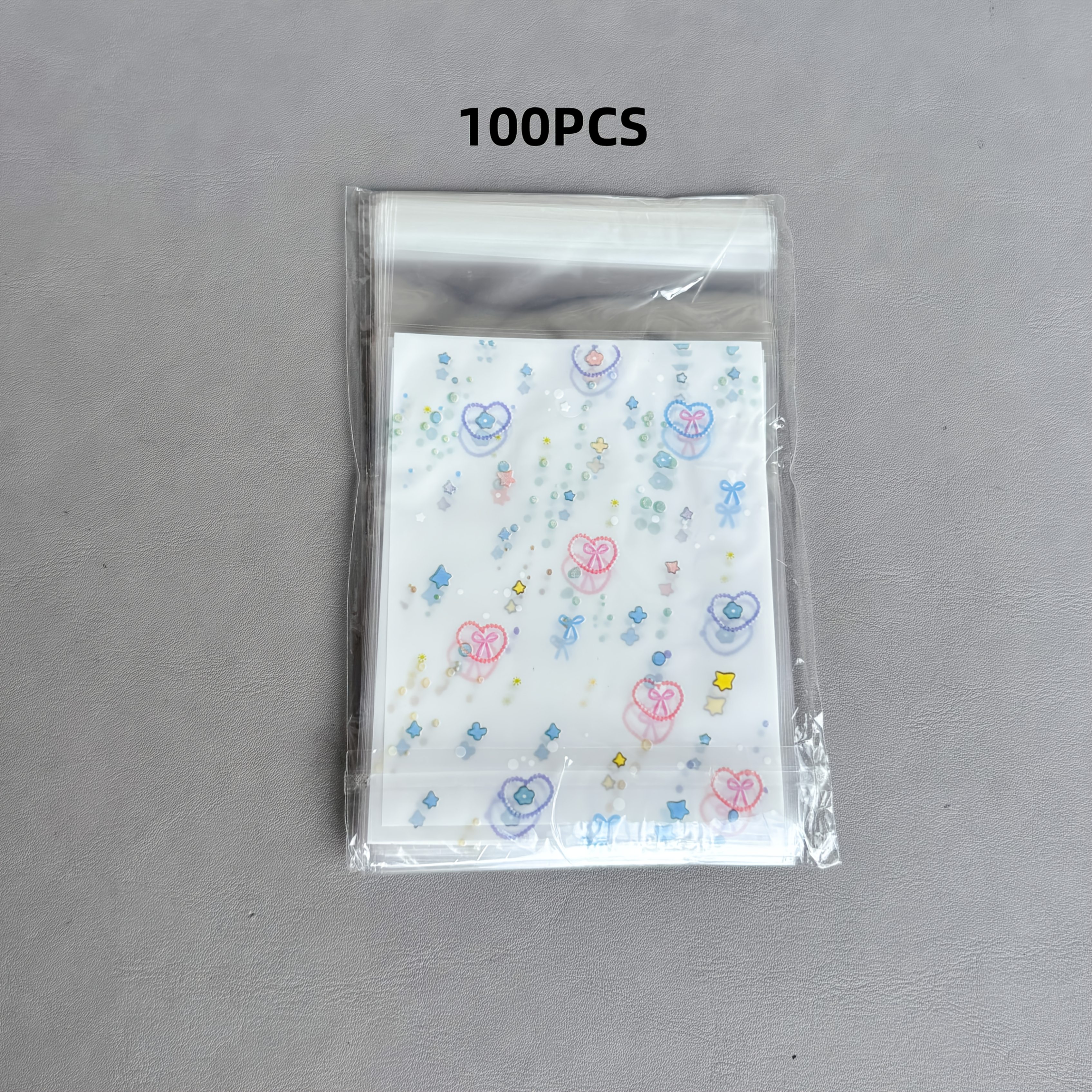 TEMU 50/100개 8x13cm OPP 플라스틱 접착 포장 봉투 - 파스텔 하트 & 리본 디자인, 내구성 있는 투명 테두리, 선물 포장용, 보석류, 파티 용품, 공예 재료, 선물 가방