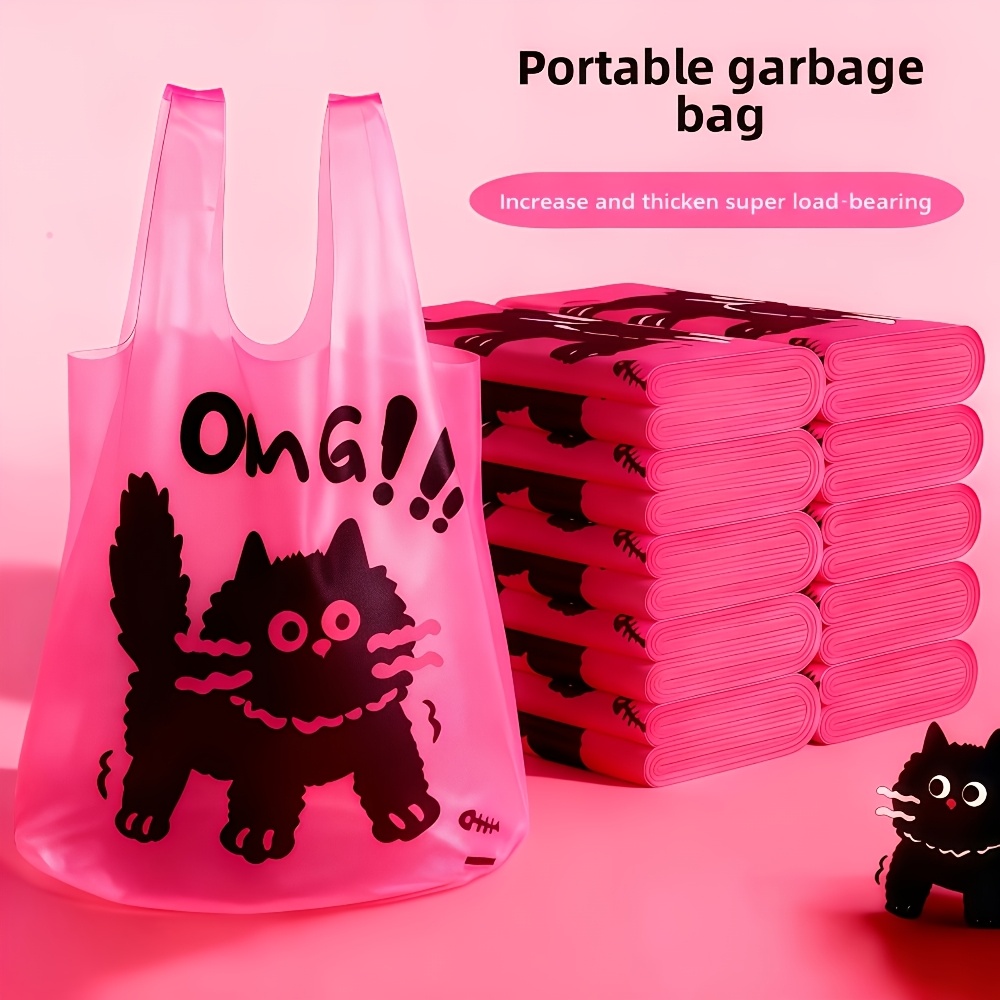 TEMU 100개 핑크 고양이 테마 쓰레기 봉투, 다용도 일회용 보관 봉투, 가정용으로 더 크고 두껍게 제작, 실용적이고 예술적인 디자인, 일상적인 쓰레기 처리에 적합, 고밀도 폴리에틸렌 재질, 주방에 적합