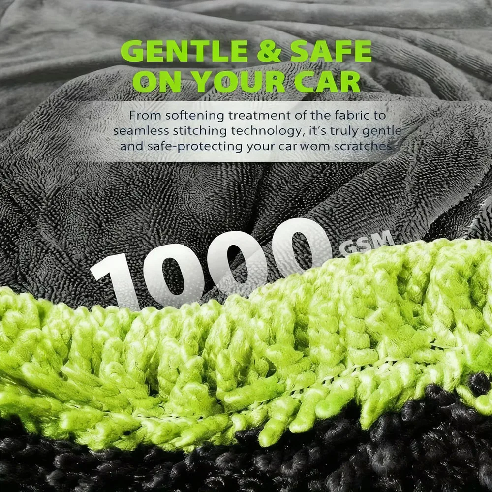 1000GSM 헤비 듀티 자동차 건조 타월 60x120cm 대형 양면 클리닝 천 초흡수성 초부드러운 스크래치 프리 타월