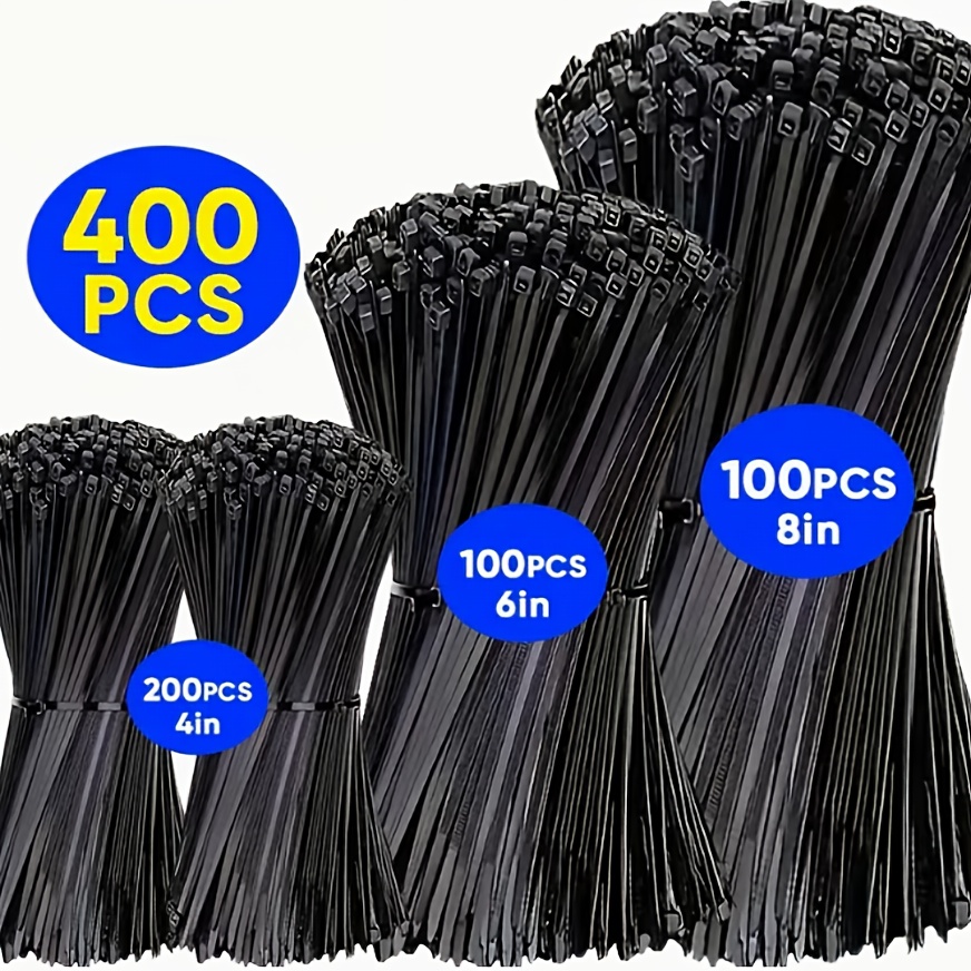 TEMU 400개 내구성 플라스틱 케이블 타이, 20.32/15.24/10.16cm, 자동 잠금 나일론 케이블 타이, 전자 제품 정리, 가정, 사무실, 산업 및 작업장 배선에 적합