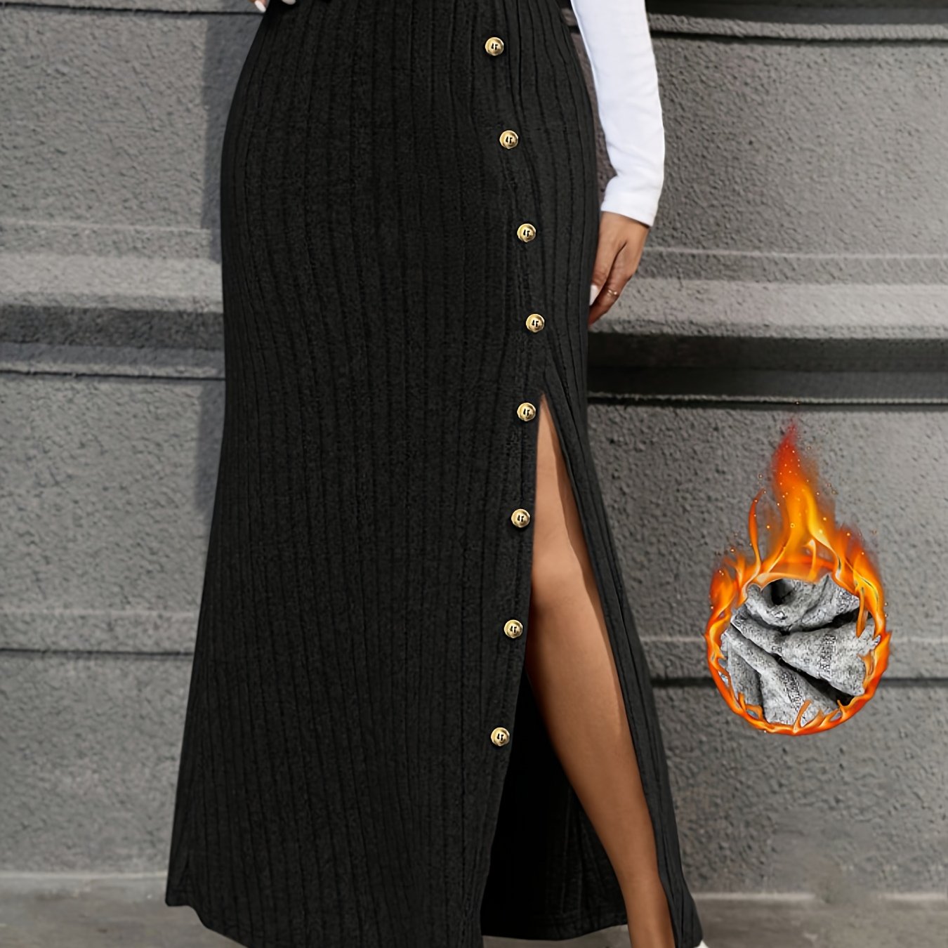 TEMU 여성용 패션 브러시드 슬릿 스커트
