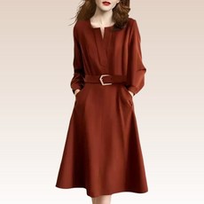 (~XXL까지) 로네다 헤링본 플레어 벨트 원피스 겨울 하객룩 오피스룩 모임룩 격식룩 연말룩 빅사이즈