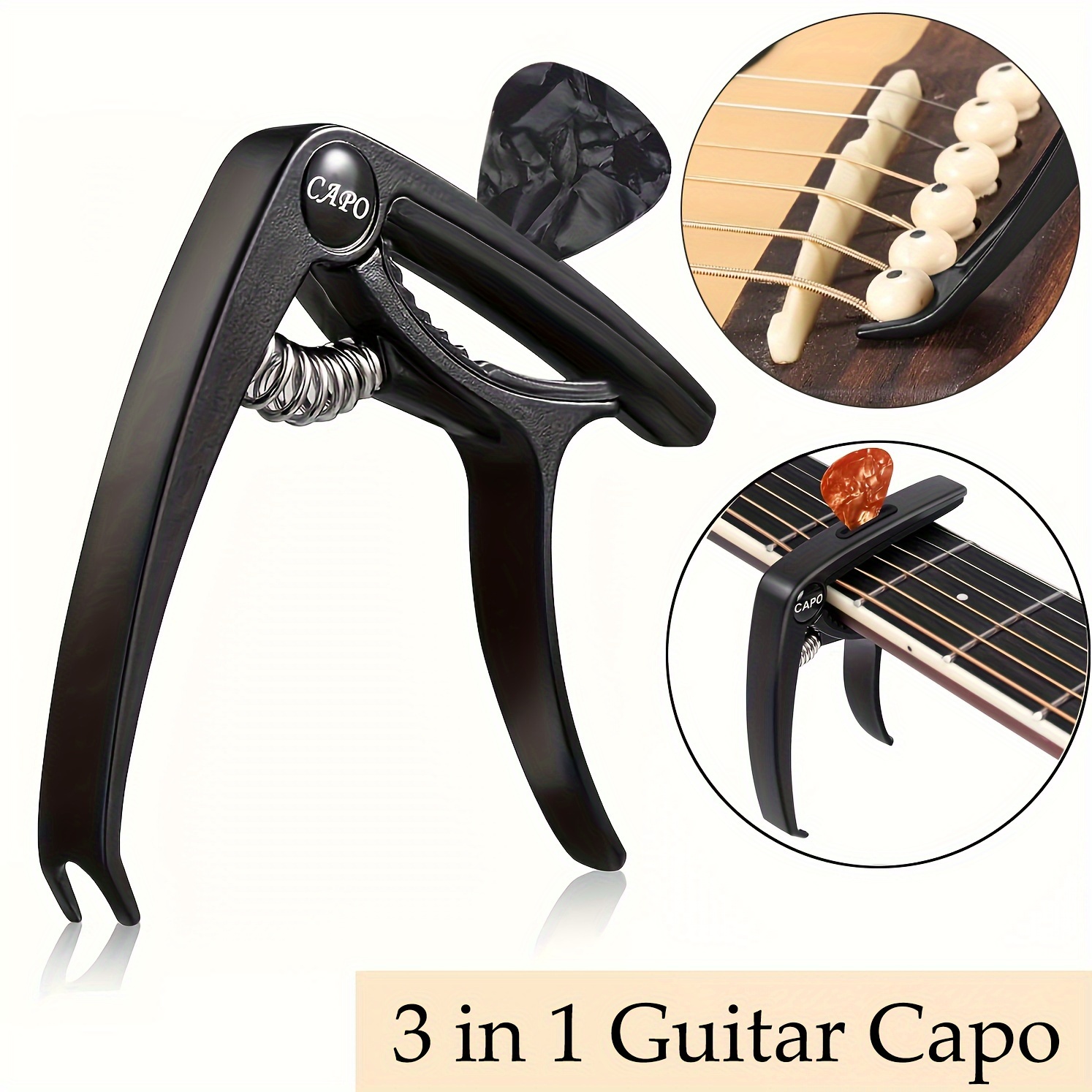 TEMU 기타 카포, ABS 수지, 블랙, 인체 공학적 라디안 디자인, 현 핀용 강철 스프링, 실리콘 패드, 이중 보호, 쉬운 현 교체, 기타 및 베이스 악세서리