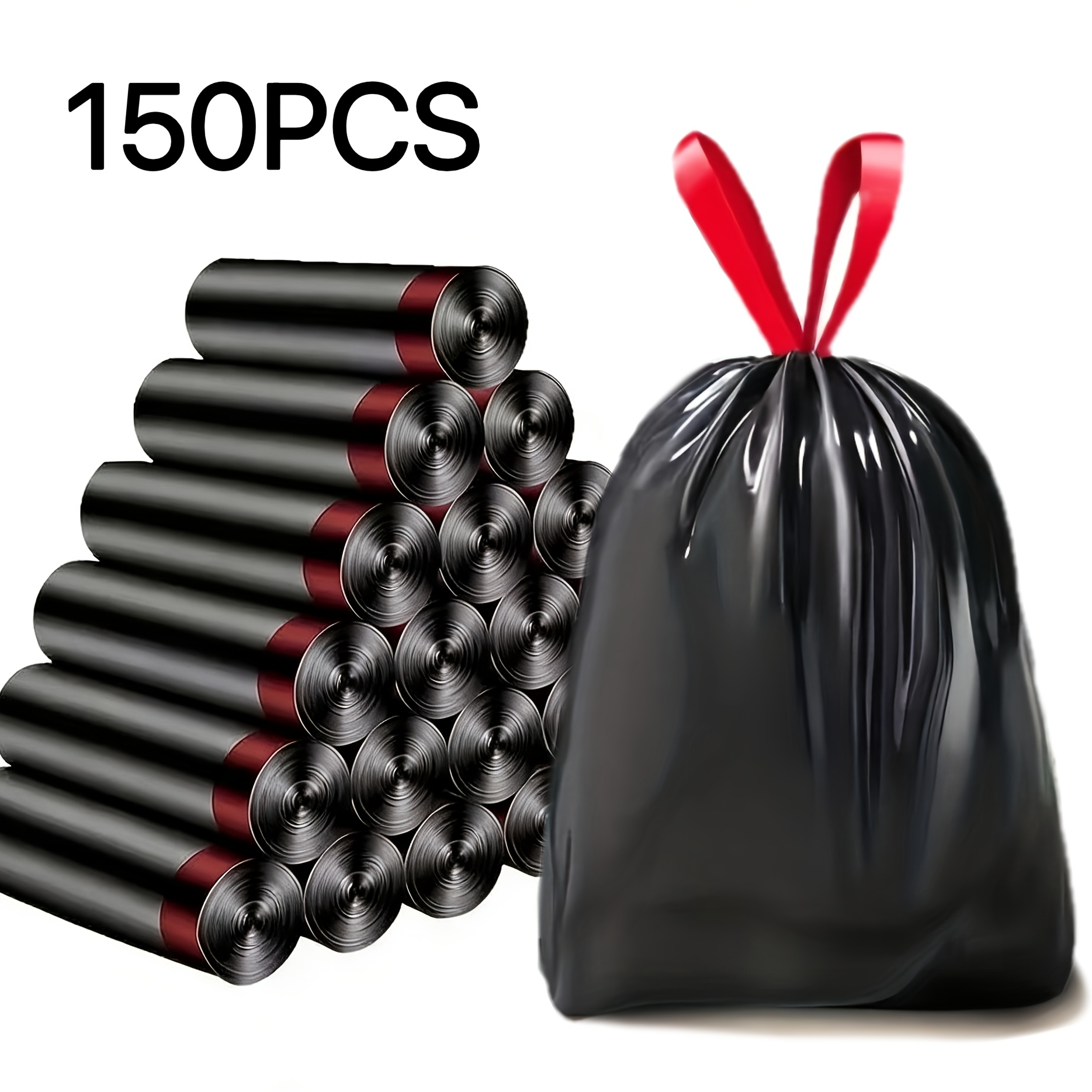 TEMU 150개 두꺼운 누출 방지 드로스트링 쓰레기 봉투, 가정, 사무실, 주방, 욕실, 야외 및 상업용으로 적합 - 및 과 호환, 주방 쓰레기 처리, 안전한 드로스트링 잠금, 냄새 방지 소재