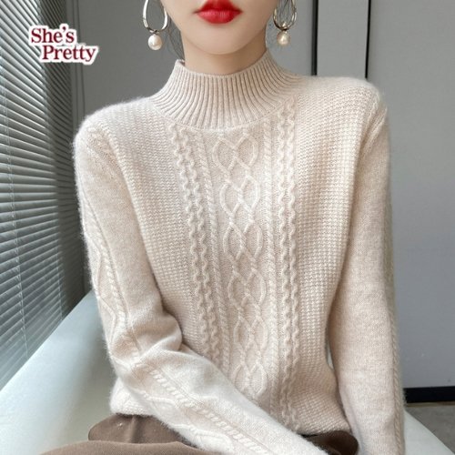 [쉬즈프리티] 케시꽈배기반목니트_여성겨울니트
