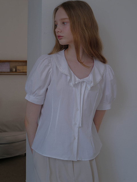 여성 청순 어깨 셔링 빅카라 화이트 셔츠 블라우스