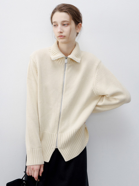 [타지타] TG_High-neck zip-up cardigan_IVORY