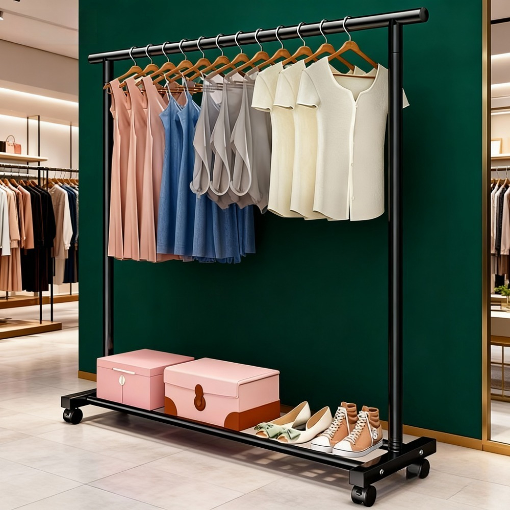 TEMU 다기능 바퀴 달린 메탈 옷걸이 - 조립 용이, 침실, 기숙사 및 세탁실 보관에 적합한 튼튼한 옷걸이, 표준 로드