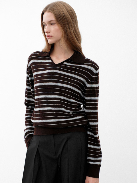 [아틀리에 나인] 에센셜 스트라이프 카라 니트(T-7113)