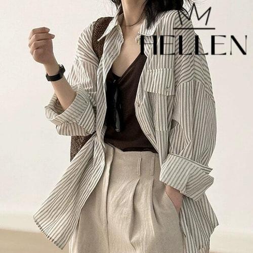 [헬렌]헬렌 여성 캐주얼 린넨 스트라이프 셔츠 베이스트라이