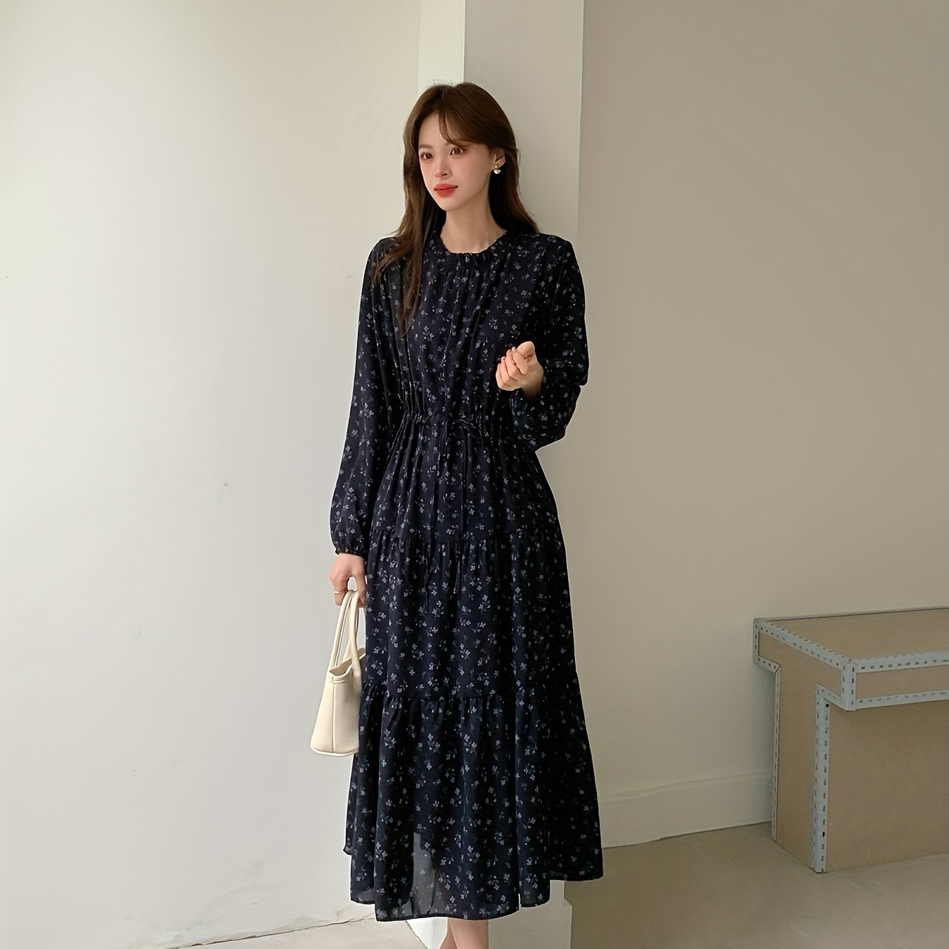 TEMU 여성용 플로랄 프린트 맥시 드레스 - 플레어드 헴, 캐주얼 & 포멀 드레스, 통기성 원단, 봄/여름용 여성 의류, 우아한 여름 드레스