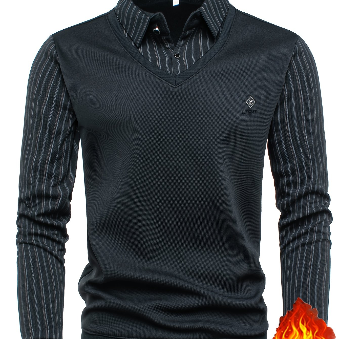 TEMU 남성용 두꺼운 겨울 셔츠 - 긴소매 버튼업 칼라, 스탠드 칼라, 신축성 없는 원단, 클래식 비즈니스 캐주얼 & 골프 셔츠 (가을/겨울용), 세탁기 사용 가능, 포멀 & , 겨울옷, 가을 패션, 스타일리시 디자인