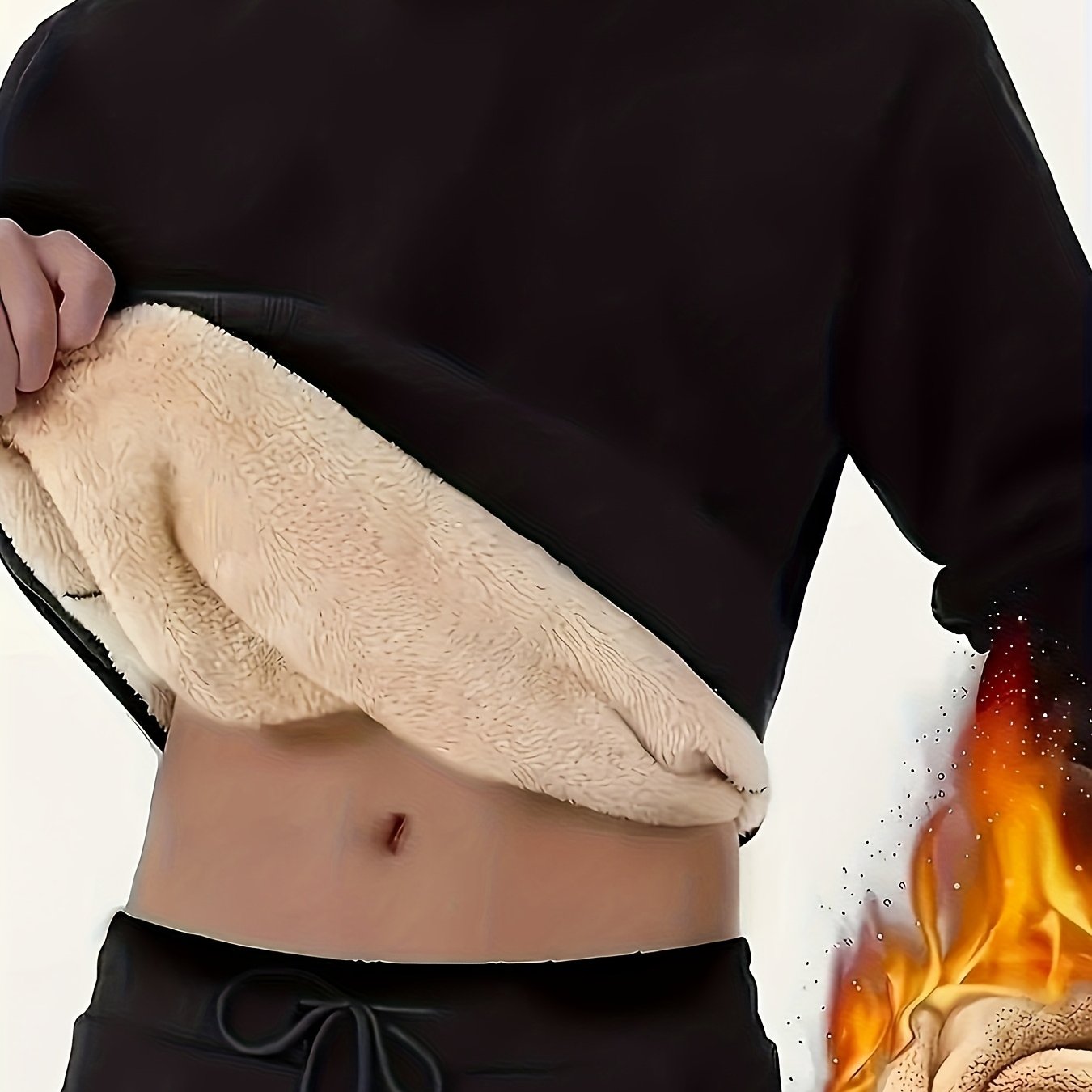 TEMU 남성용 두꺼운 겨울 기모 안감 크루넥 스웨트셔츠 - 포켓이 있는 헤비웨이트 따뜻한 베이스 레이어, 가을 & 겨울용 솔리드 캐주얼 풀오버, 손세탁 가능한 레귤러 핏 안티웨어, 겨울 의류, 시즌 의류, 클래식 디자인