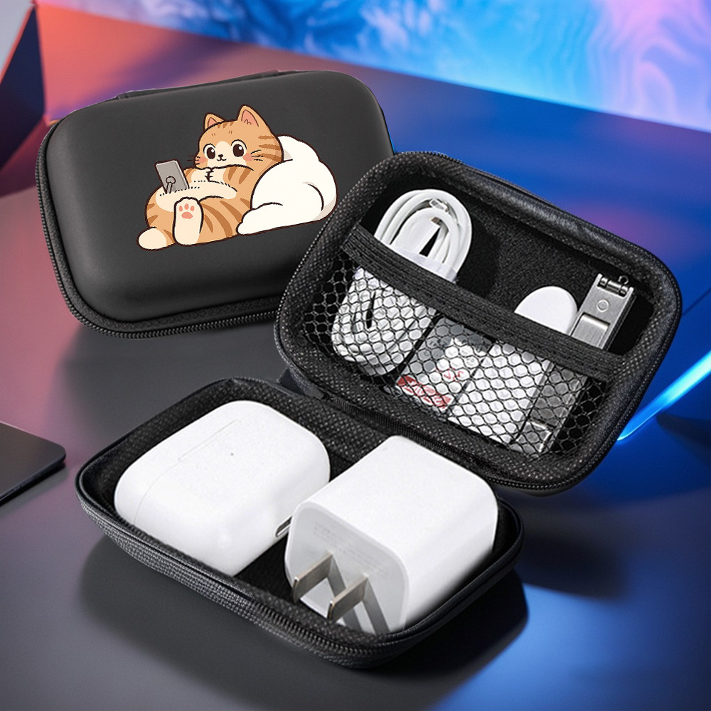 TEMU 고양이가 폰 패턴에 반응하는 충격 방지 EVA 이어폰 보관 가방 무선 케이블 정리함 하드 드라이브 지퍼 케이스 무선 헤드폰 보호대